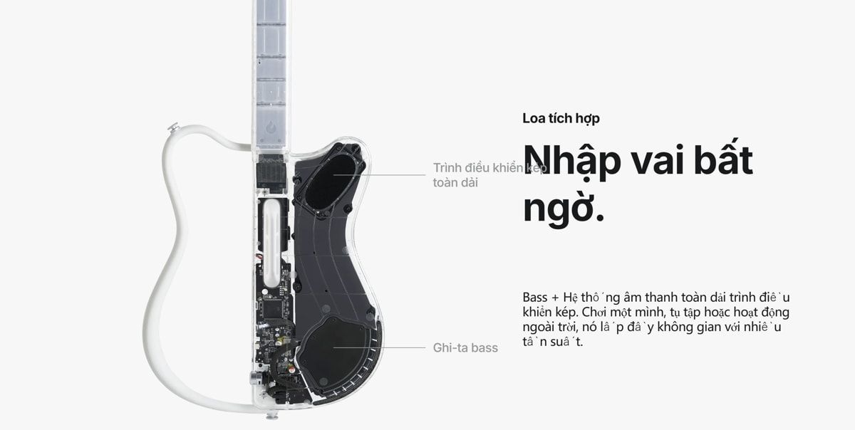 Bạn có thể tự tạo hợp âm, viết giai điệu riêng, chồng nhiều lớp âm thanh, từ acoustic, điện tử cho tới thể nghiệm. GENIE còn có trống, bass tích hợp và hệ thống loa full-range, cho âm thanh dày dặn, vang khắp phòng mà không cần loa ngoài. Cứ tưởng tượng đang ôm một dàn nhạc mini trong tay, ra nhạc ở công viên, trên bãi biển hay ngay trong phòng khách.